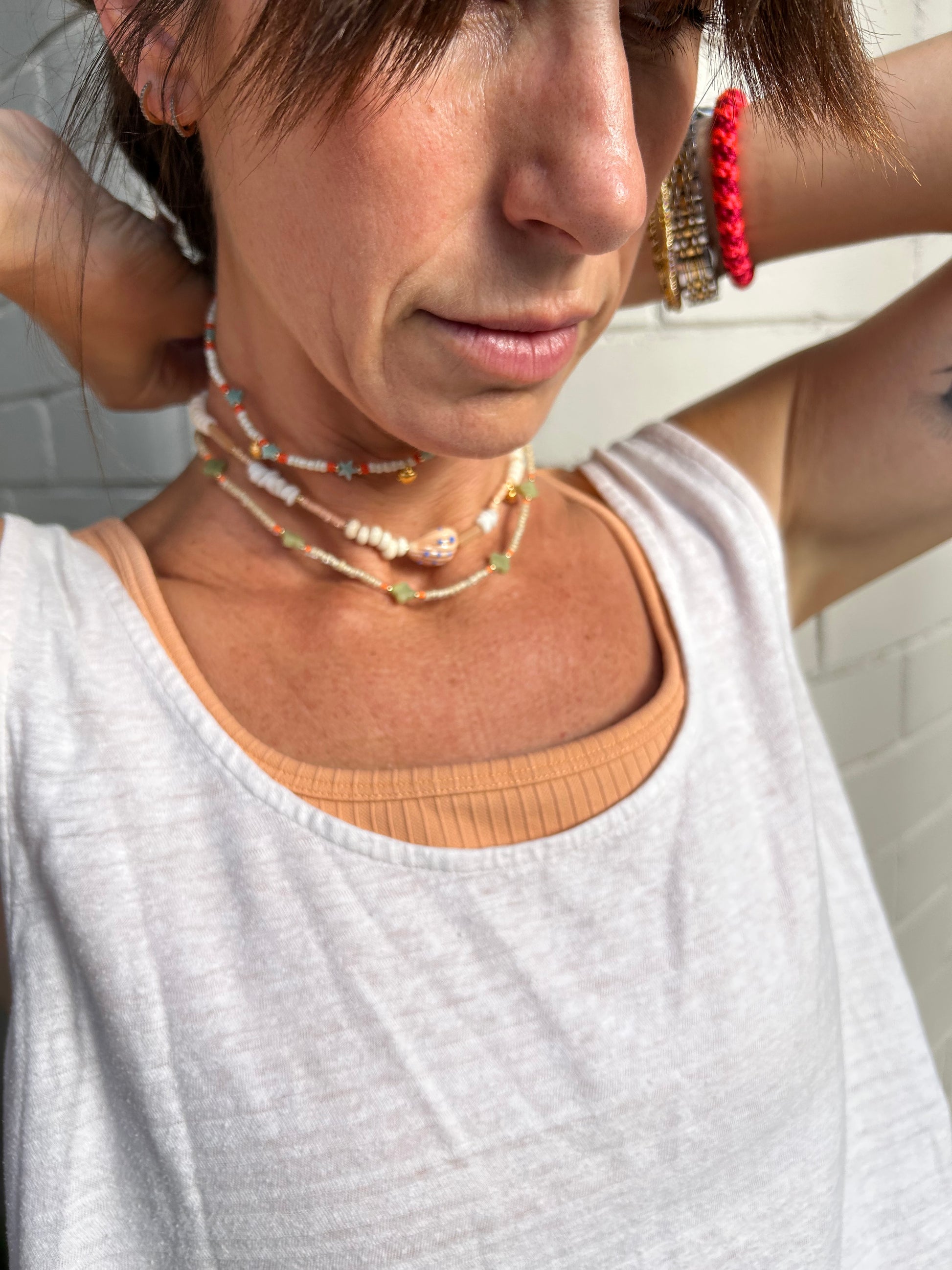 - assorted beads: glass, ceramic, wood, resin, acrylic, natural stone, 925 silver, brass, gold plating